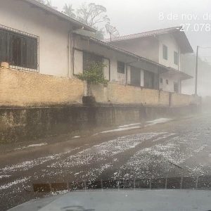 O coordenador da Defesa Civil de Brusque, Edvilson Cugik, falou sobre as chuvas. Tivemos uma tempestade, típica já para a mudança de estação, junto com a tempestade uma chuva intensa, raios e também granizo. Tivemos registro de granizo nos bairros: Bateas, Centro 2, Guarani, Limoeiro, São Pedro, São Luíz, Santa Terezinha, Santa Rita e Steffen. Tivemos um acumulado de 29,53mm, o que é bem significativo pelo tempo,” disse.
