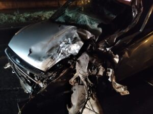 O veículo Fiesta prata vinha sentido Sarandi → Marialva e perdeu o controle, rampando no canteiro central e invadindo a pista sentido contrário, quando atingiu a caminhonete branca, fazendo-a rodar e capotar. Havia dois ocupantes (masculino, 50; e feminino, 58) no veículo prata e um (masculino, 32) na caminhonete. Nenhum deles apresentava lesões graves, mas devido à cinemática do acidente foram convencidos a serem encaminhados ao hospital, em especial o condutor do veículo prata.