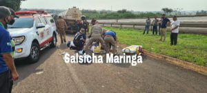 As informações são que na tentativa de ultrapassagem a um Veiculo camionete, o motociclista que conduzia a moto de cor preta perdeu o controle e colidiu contra a lateral de um caminhão que seguia sentido contrário caiu no rodado do caminhão que acabou sendo arrastado pelas pernas.
