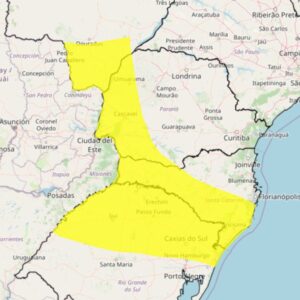 O Instituto Nacional de Meteorologia (Inmet) emitiu um alerta amarelo para vendaval e queda de granizo. O alerta começa neste domingo (14) e segue até, pelo menos, a manhã de segunda-feira (15), para as regiões Oeste e Sudoeste do Paraná.