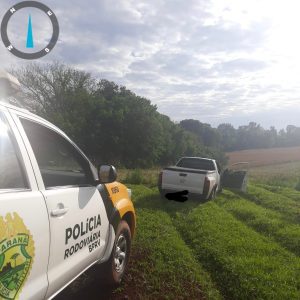 A EQUIPE COMPOSTA PELOS POLICIAIS DO PRv DE FLORESTA DURANTE OPERAÇÃO DE FISCALIZAÇÃO EM FRENTE AO POSTO DA POLICIA MILITAR RODOVIARIA NA PR 317 KM 115 MAIS 400 METROS DEU ORDEM DE PARADA A UM VEÍCULO GM/MONTANA COR BRANCA COM PLACAS DE MARINGÁ, QUE VINHA SENTIDO FLORESTA A MARINGÁ TAL ORDEM NÃO FOI ACATADA PELO CONDUTOR QUE EVADIU-SE COM O VEÍCULO SENTIDO MARINGÁ A EQUIPE EMBARCOU NA VIATURA HILUX PREFIXO 10950 E ALI INICIOU-SE UM ACOMPANHAMENTO TÁTICO POR CERCA DE 2 KM MOMENTO QUE O CONDUTOR DA GM/MONTADA ADENTROU EM UM CARREADOR POSTERIORMENTE ADENTRANDO EM UMA PLANTAÇÃO DE HORTALIÇAS ONDE PAROU O VEÍCULO DESEMBARCOU OLHANDO PARA A EQUIPE QUE ESTAVA LOGO ATRÁS E LEVOU A SUA MÃO NA CINTURA DANDO MENÇÃO A EQUIPE QUE O MESMO ESTAVA ARMADO MOMENTO ESTE QUE O POLICIAL EFETUOU UM DISPARO DE ARMA DE FOGO PARA REPRIMIR TAL INJUSTA AGRESSÃO QUE A EQUIPE PODERIA SOFRER, APÓS O DISPARO O CONDUTOR DA MONTANA EVADIU-SE CORRENDO APÉ EM MEIO A UM MATAGAL ALI EXISTENTE NÃO SENDO POSSÍVEL SUA LOCALIZAÇÃO. AO REALIZAR VISTORIA NO VEÍCULO A EQUIPE CONSTATOU EM SUA CAÇAMBA 8 OITO SACOS CONTENDO AGROTÓXICOS DE ORIGEM ESTRANGEIRA CADA SACO TINHA 25 PACOTES DE AGROTÓXICOS DE 01 KILO CADA TOTALIZANDO 200 PACOTES, SENDO 200 KILOS ONDE, 100 KILOS DA MARCA MALIBU 750 E MAIS 100 KILOS DA MARCA TIMEROL EXTRA O VEÍCULO E O AGROTÓXICO FORAM ENCAMINHADOS A POSTO RODOVIÁRIO DE FLORESTA PARA CONTAGEM E ELABORACAO DO BOU E POSTERIORMENTE ENCAMINHADOS A RECEITA FEDERAL DE MARINGA.