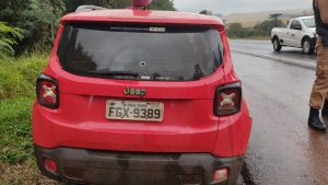 Os policiais que faziam buscas pelos criminosos cruzaram com o veículo Jeep Renegade roubado das vítimas do assalto. Na tentativa de abordagem, os bandidos reagiram atirando com armas de grosso calibre.