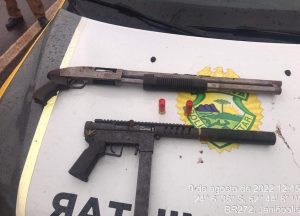 Com o criminoso ferido os policiais apreenderam uma escopeta calibre 12 e uma submetralhadora. “Ele foi levado o hospital de Campo Mourão para atendimento e depois encaminhado para a delegacia de Mamborê, onde teve origem a ocorrência”, relatou. Segundo a PM, a quadrilha é de Goioerê. FONTE HORA CERTA