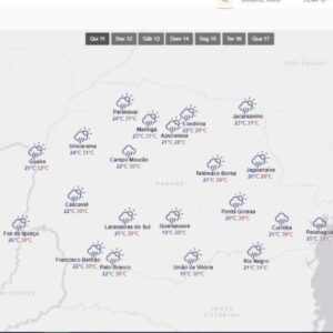 A previsão de chuva em Maringá permanece nos próximos dias e as máximas continuam próximas dos 30°C.