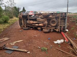 Dois ocupantes de um caminhão ficaram feridos após o veículo capotar nas margens da SC-480, em Xanxerê, em uma saída de pista na manhã desta quarta-feira, dia 29, próximo ao CTG Espelho da Tradição. O acidente ocorreu por volta das 9 horas, no km 89,750 da rodovia estadual.