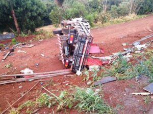 Dois ocupantes de um caminhão ficaram feridos após o veículo capotar nas margens da SC-480, em Xanxerê, em uma saída de pista na manhã desta quarta-feira, dia 29, próximo ao CTG Espelho da Tradição. O acidente ocorreu por volta das 9 horas, no km 89,750 da rodovia estadual.