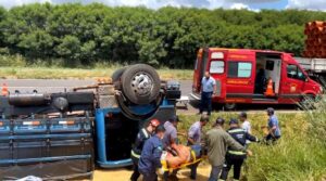 Acidente grave,motorista sendo socorrido pela equipe da defesa civil