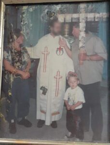 “Essa foto com a cruz meu padrasto fez uma promessa e foi a pé de Guaratuba até Aparecida do Norte pois ele devoto e tinha muita fé e esperanças em reencontrar Leandro”, contou Cristiane.