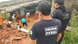 A lama que invadiu várias salas da APAE foram retiradas com o apoio de mão de obras de presos desde a manhã desta quarta-feira, os presos que estão implantados em diversos setores de trabalho da Cadeia Pública de Nova Esperança foram remanejados pela gestão da polícia penal local e regional do DEPPEN para atuarem na retirada do entulho e da terra da APAE para restabelecer as condições de trabalho da unidade educacional.