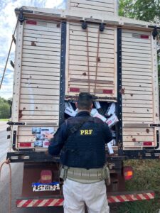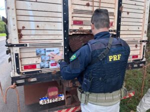 Pouco depois, uma equipe PRF apreendeu um caminhão boiadeiro na PR-486, em Perobal (PR).
