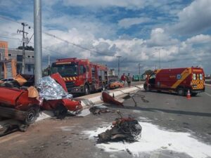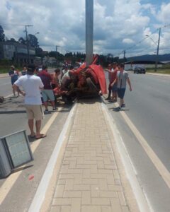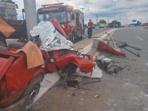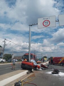 De acordo com informações de testemunhas, o veículo estava em alta velocidade quando acabou colidindo violentamente contra um poste que suporta placas de sinalização. O veículo ficou totalmente retorcido, as equipes do Corpo de Bombeiros tiveram que retirar as vítimas das ferragens que ficaram presas.