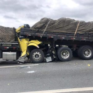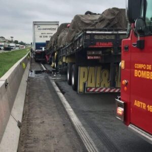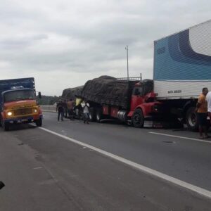 Foi um engavetamento envolvendo 4 caminhões que ocorreu na tarde desta quinta-feira (13).