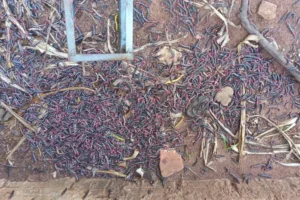 Milhares lagartas invade casas e assusta moradores no distrito de Carbonera