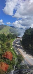 Segundo o Corpo de Bombeiros, o veículo estava carregado com transformadores e pegou fogo após o acidente, que ocorreu no km 70 da rodovia. Por pouco a carreta não despencou em uma ribanceira.