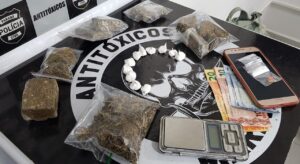 Na residência da genitora do investigado ainda foram encontradas mais algumas porções de fracionadas (totalizando 190 gramas) e uma balança de precisão.