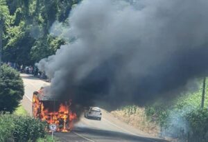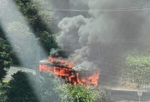 Veículo transportava trabalhadores de uma agroindústria; incêndio ocorreu na SC-150 em Lacerdópolis, no Meio-Oeste do Estado