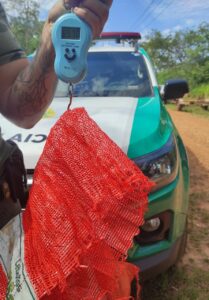 – Apreensão de Embarcação, Motor de Popa e Petrechos utilizados na infração Ambiental.