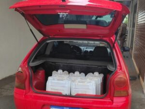 Em data de 11 fev. 22, após atendimento do 25⁰BPM/3⁰CRPM, no município de Alto Piquiri, após abordagem a 02 (dois) veículos, foi constatado o transporte produtos agrotóxicos de origem estrangeira, onde policiais do Batalhão Ambiental, prestaram apoio, lavrando a documentação administrativa referente ao crime ambiental. O defensivo agrícola localizado identificado como PARAQUAT SOMAX 340 é considerado um produto de uso proibido no território nacional. Os responsáveis foram encaminhado a PF/Guaíra para as providências criminais cabíveis.