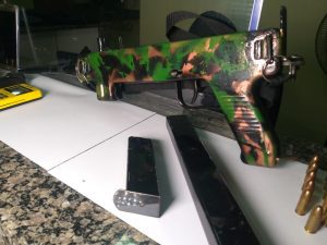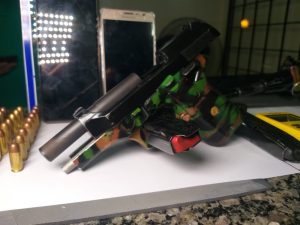 Equipe ROTAM após troca de informações com a GM de Sarandi, tomou ciência de uma motoneta biz vermelha rodando possivelmente com alerta. Foi abordado a Honda Biz com placa fria na av. Cuiabá esquina com a rua Nova Londrina com um masculino. Ao consultar chassi constatou alerta de furto pelo sistema SESP investigações. Indagado o indivíduo onde morava, repassou endereço de Maringá. Mas já era de conhecimento da equipe Rotam que estava mentindo, deslocado no endereço de sua residência no final da rua Cuiab.Em seu apartamento foi localizado uma submetralhadora municiada, no carro Palio que estava na garagem do indivíduo, localizou uma pistola taurus .380 embaixo do banco. Foi dado voz de prisão ao indivíduo e encaminhado juntamente com os objetos até a delegacia de polícia civil de Sarandi para providências.