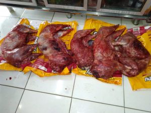 05 animais nativos (Catetos) abatidos, apreendidos;