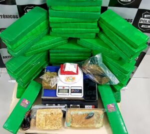 Já na residência foi encontrada uma grande quantidade de drogas, sendo: 1,800 kg de crack, 24 comprimidos de ecstasy e 24,520 de maconha, além de três balanças de precisão. O prejuízo para o tráfico chega a aproximadamente R$ 150.000,00.