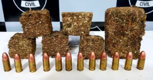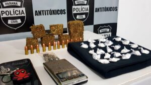 Em diligências, na residência do investigado, ainda foram encontradas mais algumas porções de fracionadas de maconha (total de 225 gramas), além de haxixe (8 gramas), cocaína (20 porções), 12 munições calibre 9mm e uma balança de precisão.