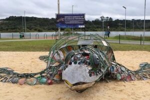 “Exposição ficará no Parque das Águas e visitantes poderão descartar garrafas pets dentro do casco da tartaruga”.