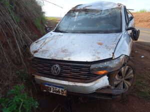 VW/TCROSS de cor prata, placa de São Bernardo do Campo/Sp capotado. Realizado uma averiguação no veículo, foi constatado vestígios e dor de entorpecente e realizado uma consulta no chassi no sistema SESP INTRANET foi constatado alerta de roubo, sendo sua placa correta da cidade de Campinas/Sp e ao lado do veículo um tablete de maconha pesando 750 grama. Diante dos fatos foi recebido um apoio do guincho do 8° BPM equipe Sd Vagner Rossini e Sd Moreira que levou o veículo até pátio da Delegacia de Polícia Civil de Rondon. Posterior equipe deslocou até Delegacia de Polícia Civil de Cidade Gaúcha para entrega do entorpecente. O motorista se evadiu do local antes da chegada da equipe policial no local.