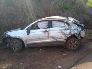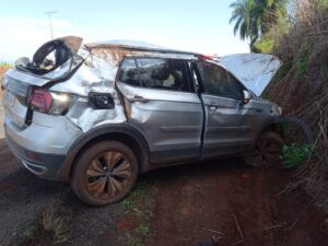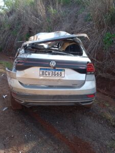 VW/TCROSS de cor prata, placa de São Bernardo do Campo/Sp capotado. Realizado uma averiguação no veículo, foi constatado vestígios e dor de entorpecente e realizado uma consulta no chassi no sistema SESP INTRANET foi constatado alerta de roubo, sendo sua placa correta da cidade de Campinas/Sp e ao lado do veículo um tablete de maconha pesando 750 grama. Diante dos fatos foi recebido um apoio do guincho do 8° BPM equipe Sd Vagner Rossini e Sd Moreira que levou o veículo até pátio da Delegacia de Polícia Civil de Rondon. Posterior equipe deslocou até Delegacia de Polícia Civil de Cidade Gaúcha para entrega do entorpecente. O motorista se evadiu do local antes da chegada da equipe policial no local.