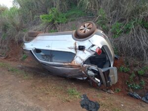 Fomos informado pelo usuário da via que na Rodovia Estadual Pr 492 entre Paraíso do Norte e Rondon havia um veículo capotado. Ao chegar no Km 45+700 metros foi localizado um veículo
